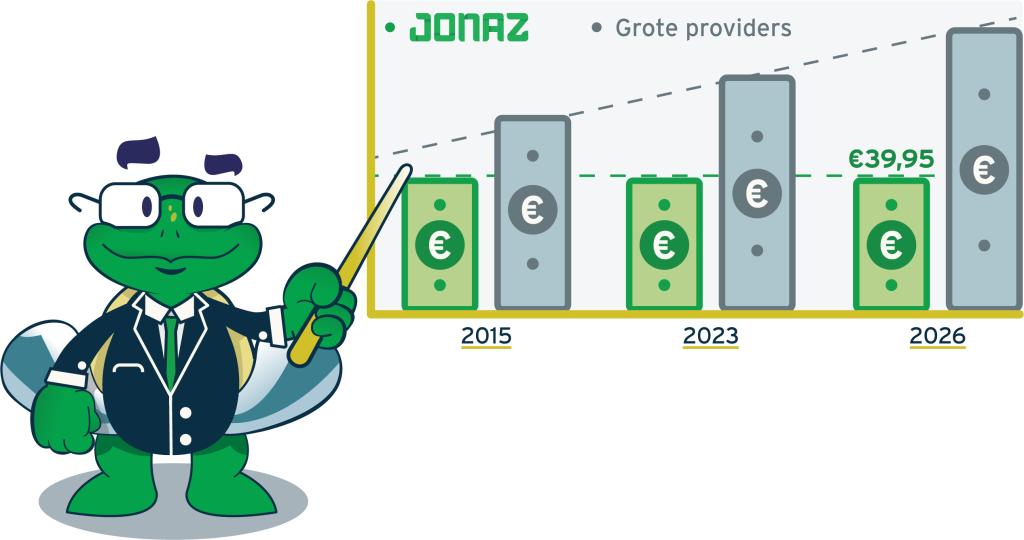Ook wordt je abonnement bij verlenging niet duurder. Bij Jonaz werken we niet met actie-tarieven of schijnbedragen die na het 1e jaar vervallen. €39,95 is dus echt €39,95. Wel zo eerlijk!